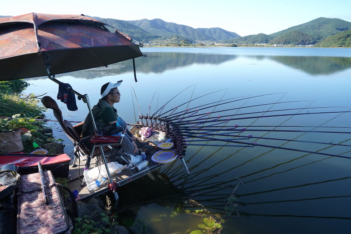 제방권낚시 요령을 하나 더 추가하자면, 기존의 터 닦인 자리 대신 생자리를 파고 들어가는 것도 좋은 방법이라는 점이다. 제방권은 거의 전 구간의 특징이 비슷하다보니 아무래도 손 안 탄 곳이 유리하다는 게 단골 낚시인들의 경험이다. 실제로 이날 함께 낚시인 이기안(낭만붕어) 씨는 생자리를 개척해 하룻밤에 15마리에 가까운 붕어를 낚았다. 풀이 아주 무성하지 않아 굳이 낫 같은 도구가 없어도 생자리 개척이 가능하므로 약간만 노력하면 의외의 손맛을 볼 수 있을 것이다.