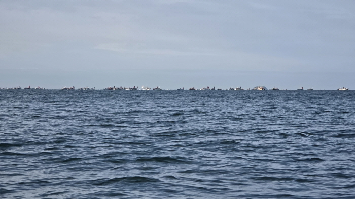 주꾸미 낚싯배로 북적이는 원산도 앞바다. 필자 일행도 저 틈에 끼어 주꾸미와 갑오징어를 낚았다.