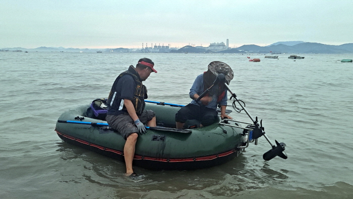 필자가 소유한 붕어낚시 보트에 2마력짜리 전기 엔진을 달아 주꾸미를 낚았다.