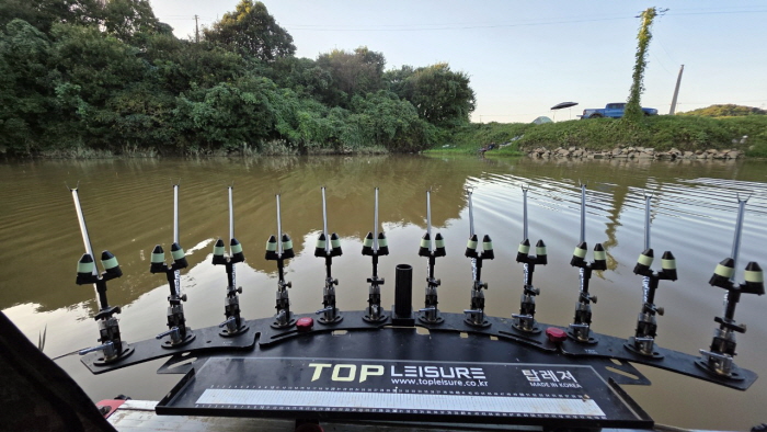 그렇게 멋진 식사를 마치고 자리로 돌아와 3.2칸부터 4.2칸까지 모두 11대를편성하였다. 수심은 1.9m 정도가 나왔다. 낮에 약 20cm의 배수가 있었지만 저녁에는 약한 오름수위가 이어지고 있었다.