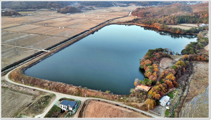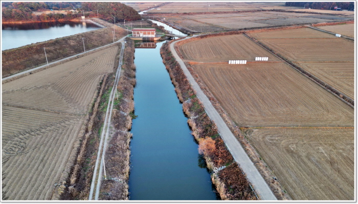 이미 해가 서산으로 지고 있기에 서둘러 지포지를 지나 수로로 진입하였다. 수로 입구에는 부들이 잘 발달 되어 있는 수로와 둠벙이 있었다. 좁은 도로를 지나 안쪽으로 조금 더 들어가면 또 다른 지포 저수지로 물을 끌어 올리는 양수장이 정면에 나타난다. 그곳을 지나면 양쪽으로 석축으로 되어 있는 수로가 이어지며 포인트가 형성되어 있었다.