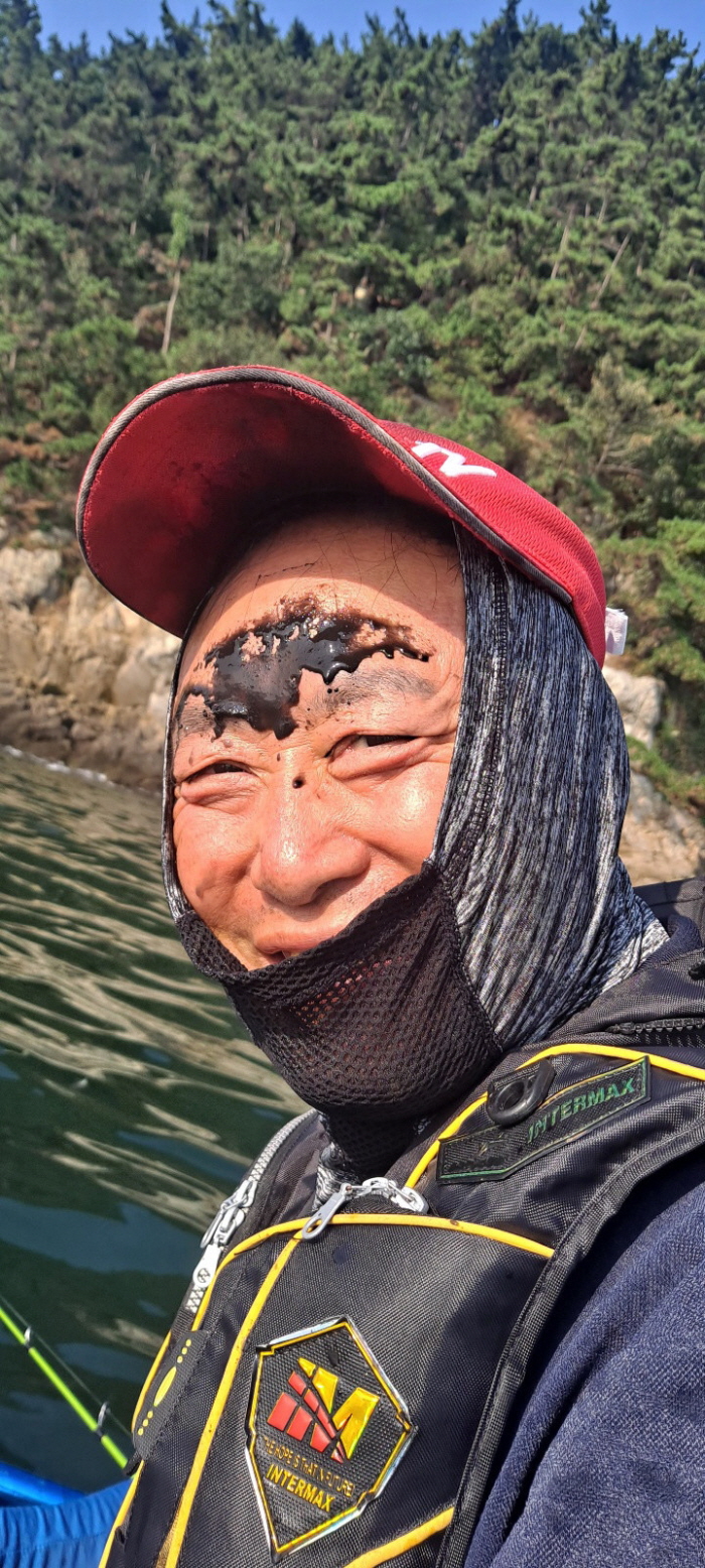 갑오징어에게 먹물 테러를 당한 김길수 씨.