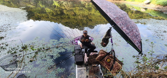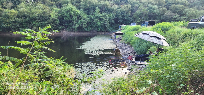 토요일 오전 11시 즈음 일주일전 필자가 답사한 주봉지에 도착했다. 아직 중, 상류쪽은 마름이 삭지 않아 제방권과 중류권에만 몆 자리가 나왔다. 필자는 제방에서 수중전을 하기로 했고 세 명의 회원은 제방권에 자리를 잡았다.