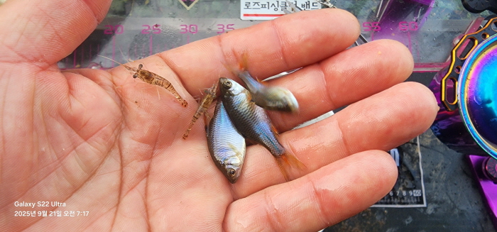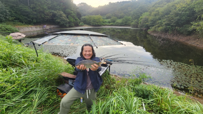 새벽에 기상을 해보니 새벽 5시30분. 그때까지도 버티며 낚시했던 김진일 회원이 “장미(필자의 닉네임) 님 한 수 했습니다”라고 말하는 소리가 들렸다. 필자가 차로 들어가 잠을 잔 새벽 2시40분 쯤 35cm급의 허리급 월척붕어를 낚은 것이다, 필자도 자리에 앉자마자 27cm급 붕어를 올렸다.