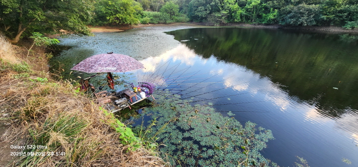 오후 5시 즈음, 회원들이 갑자기 불안감을 들어내었다. 분명 토종터인데 입질 한 번 없었기 때문이다. 사실 필자에게는 대편성 도중 한 번의 입질이 들어왔는데 늦게 본 탓에 낚싯대 한 대가 마름 속으로 처박힌 터라 회원들에게 좀 더 기다려보자고 주문했다.