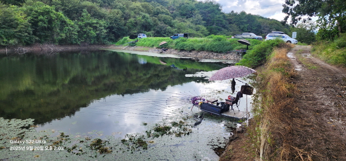 원래 이곳 주봉지는 그물질 두 번, 물 한 번 마르기 전까지는 붕어 체형이 길쭉했었다. 낮에는 중치급부터 준척급이, 밤에는 월척에서 4짜급까지 잘 낚이던 유명터였다. 이후 필자가 4짜와 월척 외에 28cm급 이상 붕어 300여 마리를 이식한 후 2년 뒤 회원들에게 이곳을 추천하여 낚시를 한 적 있었다. 그때는 낮이고 밤이고 붕어가 잘 낚였었다.