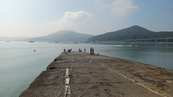 대무의도 광명항에 있는 두 개 방파제 중 큰 방파제다. 간조 때도 물이 완전히 빠지지 않아 낚시할 수 있으며 만조 때는 방파제 전역에서 낚시할 수 있다. 주꾸미, 망둥어, 갑오징어, 농어, 우럭 등 다양한 어종이 낚인다. 발판이 높기 때문에 만조 때는 방파제에서 낚시하다가 간조 때는 방파제 석축 아래로 내려가서 낚시한다. 주변에 주차장이 없는데다 최근 광명항 공사로 인해 도로에 주차를 금지하고 있어 공사가 끝나는 내년 3월까지는 불편을 감수해야 한다. 방파제와 이어지는 연안 갯바위에서도 낚시가 잘 된다.