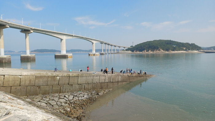 최근 주꾸미, 갑오징어로 최고 핫한 포인트다. 중썰물 이후 연안이 드러나면 웨이더를 입고 물에 들어가 주꾸미를 노리는 낚시인들이 있을 정도로 조과가 좋다. 주꾸미를 노리면 평균 30마리 정도 낚을 수 있으며 하루 종일 낚시한다면 100마리도 낚을 수 있다. 단, 연안이 드러나는 간조선을 따라 넓은 구간을 걸으며 낚시해야하며 무릎 수심정도는 들어가야 더 멀리 노려 입질을 받기 쉽다. 낚시인이 많은 것이 단점이지만 넓은 간격을 유지하기 때문에 낚시하는 데 큰 불편함은 없다. 광어, 갑오징어, 망둥어도 잘 낚인다. 잠진도선착장에서 걸어서 진입.