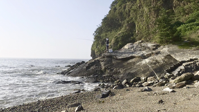 장촌포구 초입 갯바위에서 감성돔을 노리는 장면. 수위가 높지 않아 여건이 좋지 못했다.