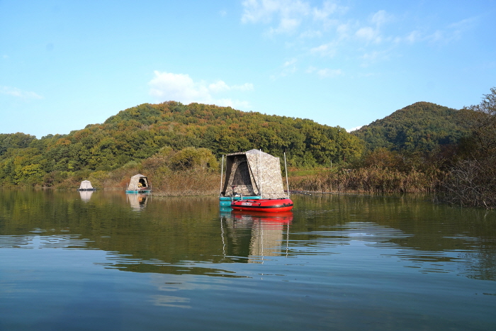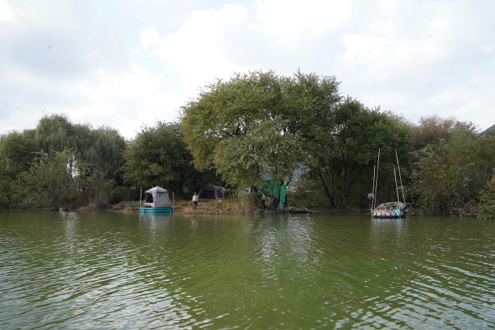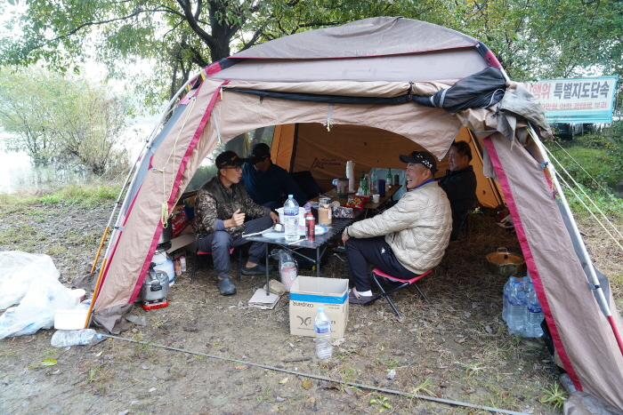 10월 31일 금요일 오후부터 집결한 회원들은 우안 중상류에 있는 신유리 인근 연안에서 보트를 론칭 했다. 도고지의 주요 보트낚시 포인트는 좌안 중상류. 이 구간은 민가와 개인 사유지가 대부분이라 연안낚시가 어려운 구간이다. 그래서 이 구간은 주로 보트낚시인들이 찾는데 물속에 수몰 버드나무와 갈대밭이 많아 멋진 보트낚시 포인트를 형성하고 있다. 보통의 저수지는 연안 낚시인들과 마찰이 일어나는 경우가 빈번하지만 도고지는 그런 갈등도 없는 편이다.