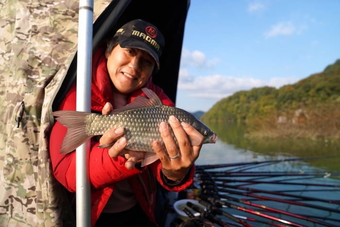 이도헌 필드스탭은 “바람은 강했지만 보트가 너울 속에서도 안정적으로 자리를 지켜 좋은 조과를 거둘 수 있었다”고 말했다. 양평에서 온 박군영 회원은 “이날 낚인 붕어는 대부분 옥수수에 올라왔다. 확실히 글루텐보다 블루길이 덜 덤비고 씨알 선별력에서도 우세했다. 도고지는 얼음 얼기 전까지도 월척을 기대할 수 있는데 그때까지도 옥수수빨이 좋은 편이다”라고 말했다.