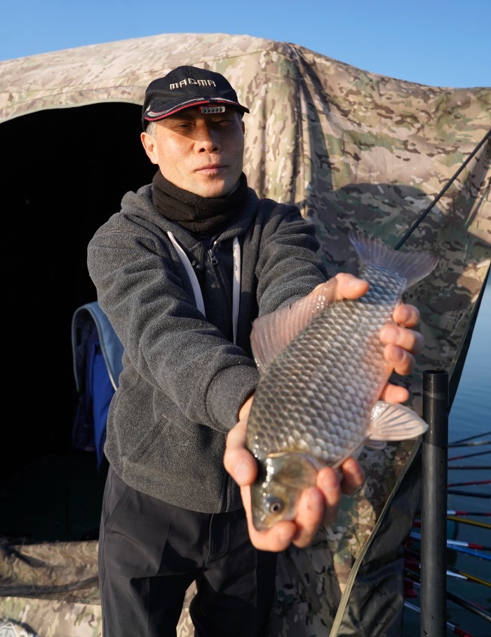 하지만 그런 와중에도 회원들은 월척과 준척급 붕어를 어렵지 않게 뽑아낼 수 있었다. 마그마보트는 양쪽의 길쭉한 튜브가 무거운 상판을 받치고 있는 구조라 바람이 불면 상판 아래로 대부분 빠져간다. 여기에 마그마보트 만의 특장점인 리프트 기능도 역할을 톡톡히 했다.