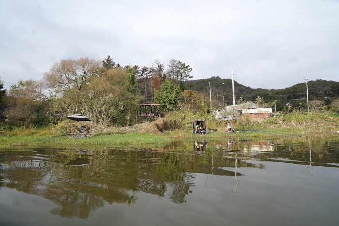 군계일학 월척원정대가 정출지로 택한 광주 오운제 우안 하류권. 10월 중순 첫 추위 때 4짜 붕어가 2마리나 낚였다.