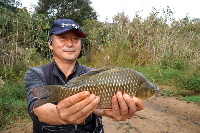 취재 날이 주말이다 보니 상류에 걸쳐 많은 인원이 몰리는 바람에 조황은 썩 좋지 않았다. 최윤진(낚시가좋다) 회원이 올린 36cm가 가장 큰 씨알이었고 그 외에는 8~9치급이 서너 마리 낚인 게 전부. 블루길 성화가 너무 심했던 점도 조황이 부진했던 이유가 됐다. 다만 앞서 언급한 최상류 좌안 수초밭에서는 광주 낚시인 윤상배 씨가 44cm를 올려 눈길을 끌었다.