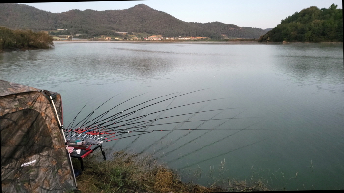 차가운 북풍이 맞바람이었으나 오후부터 바람이 잦아든다는 예보를 믿고 대편성을 마쳤다. 전용배 씨의 부인 서미숙 씨 자리는 약 1m, 전용배 씨 자리는 약 1.5m, 내 자리는 약 1.2~2m의 수심이 나왔다. 채집망을 던져 넣은 후 미리 준비해온 옥수수와 지렁이를 병행하여 미끼로 꿰었다. 가을 햇살이 지고 찌불을 밝히자 강하게 불던 바람은 서서히 자기 시작했다.