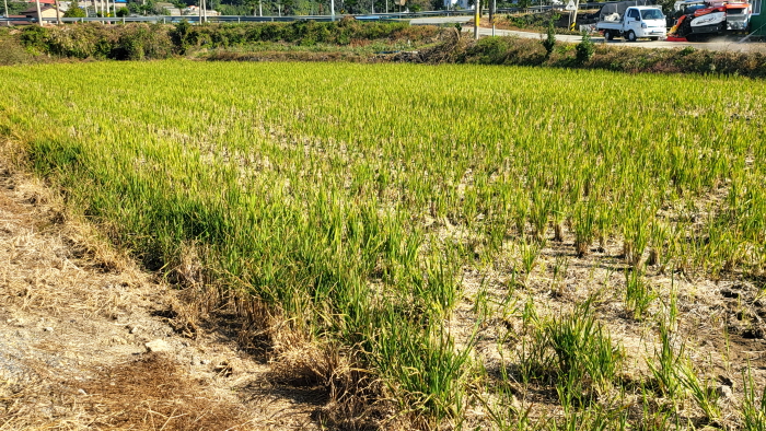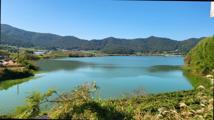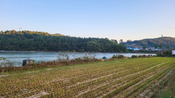 추수가 끝난 저수지 인근 농지.