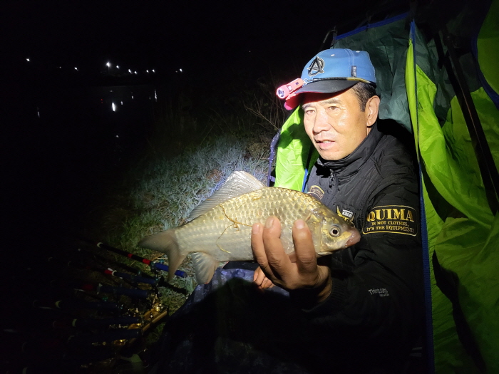 자정 무렵까지 준척과 월척급 붕어의 낱마리 입질이 이어지다가 서리가 조금 내릴 정도로 기온이 낮아진 새벽에는 소강상태를 보였다.