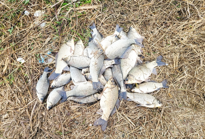 동이 터 오르기 전에 따뜻한 커피 한잔으로 추위와 피곤함을 풀며 아침낚시를 준비했다. 날이 밝자 살치 성화가 심했고 붕어 입질은 뜸하게 들어왔다. 그래도 모두들 비슷하게 붕어 손맛을 본 터라 철수를 준비했다. 날이 밝은 아침에 보니 녹조는 전날에 비해 농도가 더 짙어져 있어 붕어 입질 보기는 쉽지 않았다.