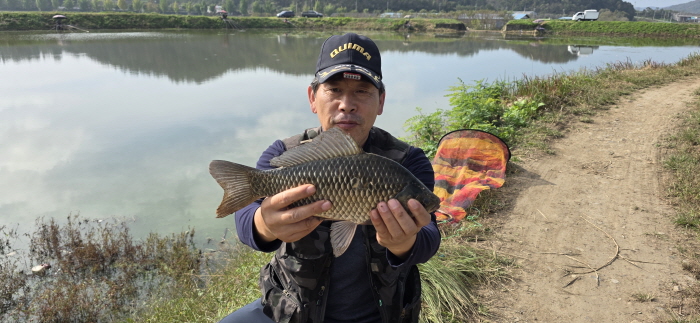 새우 미끼로 새벽에 35cm급 붕어를 올린 박진하 회원.