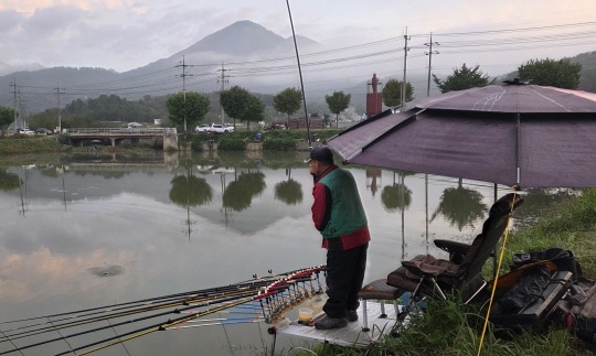 우측 도로변 초입구에 자리한 문종수 회원. 1947년생으로 로즈피싱 내 최고령 낚시인이며 열정이 대단하신 분이다.