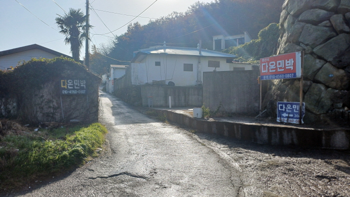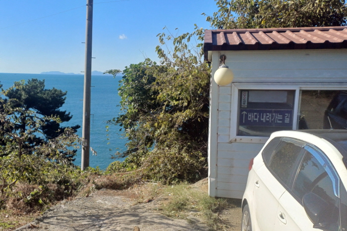 해안의집 앞 주차장에 있는 건물에 '바다 내려 가는 길'이라고 적혀 있다.