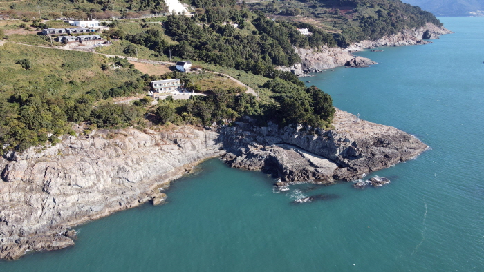 예전에 사용하던 출입로가 현재는 막혀 진입하기가 다소 불편하지만 발판이 편하고 조과도 좋은 남해도 국민 포인트다. 공동묘지 아래와 비교하면 수심이 얕으며 조류도 약한 편이다. 11월을 전후로 감성돔이 마릿수 조과를 보이며 12월 중순 이후에는 마릿수 조과가 떨어지지만 멀리 노리면 큰 감성돔을 낚을 수 있다. 정면을 바라보고 조류가 좌측(주로 썰물)으로 흐를 때 채비를 멀리 던져 주변 수중여를 노린다. 밑걸림이 많고 종종 목줄이 쓸려 채비가 터지기도 하지만 감성돔이 한 번 붙으면 조황이 오래가는 편이다. 갯바위가 널찍하고 낮기 때문에 포인트에 진입한 이후로는 이동하기 수월하다. 사진 우측 너머까지 이동할 수 있지만 갯바위 정중앙에 자리를 잡고 좌우측을 충분히 활용하는 것이 조과에 도움이 된다. 들물이 강할 땐 받밑에서 입질하기도 한다.