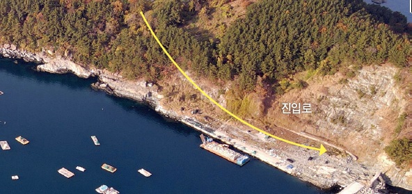 이곳에 주차 후 바로 내려가면 수심이 15m 내외로 나오는 또 다른 포인트 진입 가능하며 펜션 아래로 진입하기 위해서는 5분 정도 되돌아 걸어 내려와야 한다.