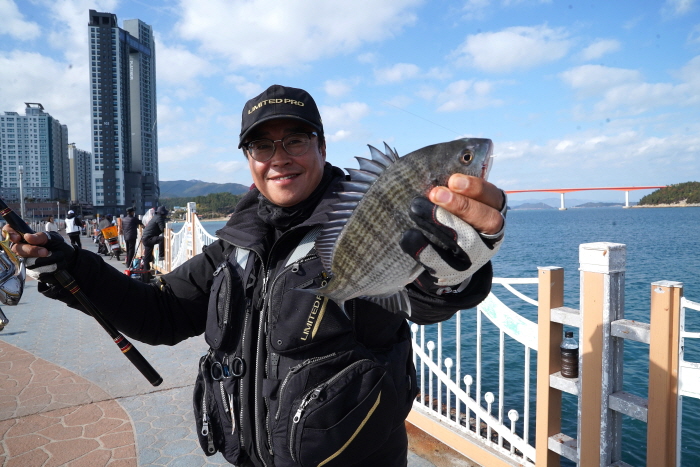 “읍내 방파제에서 이 정도 씨알이라면 대박 아닙니까?” 완도 낚시인 곽영준(한국프로낚시연맹 전서지부 회원) 씨가 방금 올린 30cm급 감성돔을 자랑하고 있다.