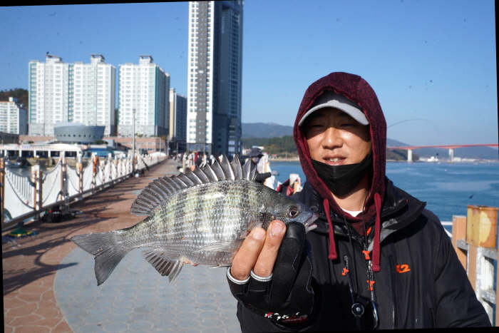 서울 낚시인 김기훈 씨가 30cm가 넘는 감성돔을 자랑하고 있다.