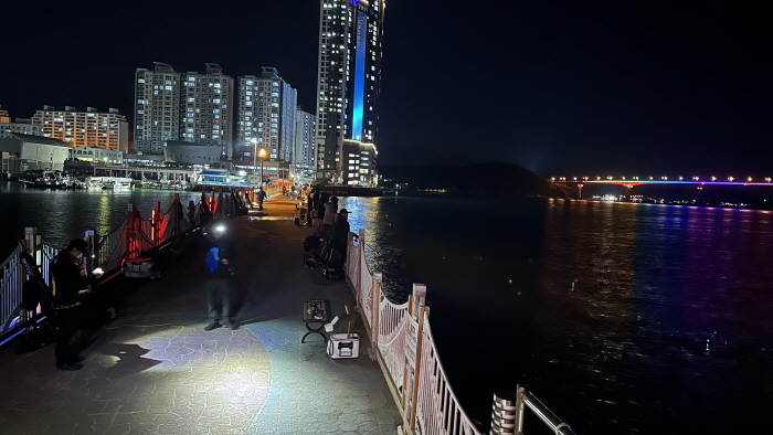 화려한 조명도 눈길을 끌었다. 최근의 바닷가 지자체들은 방파제를 관광명소로 조성하는 곳들이 많은데 이곳도 그런 차원에서 관리하는 듯 보였다. 화려한 조명과 더불어 빨갛고 노란 전자찌가 어두운 수면 위를 수놓았다. 그 모습이 너무 아름다웠고 기대 이상의 볼거리였다.