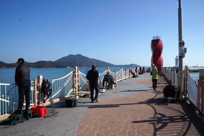 돋보이는 점은 또 있다. 보통 방파제는 입구가 계단이거나 층이 진 구조물 때문에 진입이 쉽지 않은 곳이 대부분이다. 그러나 노래하는 등대 방파제는 초입부터 평평한 바닥이라 휠체어를 탄 장애인도 쉽게 진입할 수 있도록 했다. 방파제 초입에는 매점은 물론 낚시인들을 위한 화장실까지 마련돼 있어 가족 또는 연인과 출조해도 불편함이 없다.