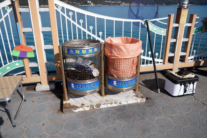 완도군에서 방파제 곳곳에 설치한 쓰레기통. 환경을 보호하고 지역 레저산업도 육성하는 모범사례이다.