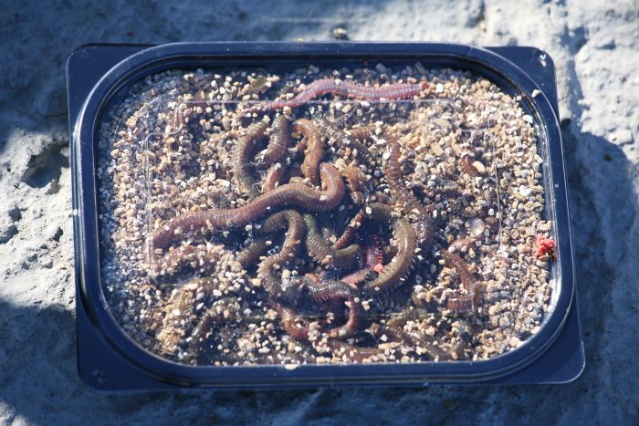 청갯지렁이 미끼. 남은 것은 소금에 절여 다시 사용한다.