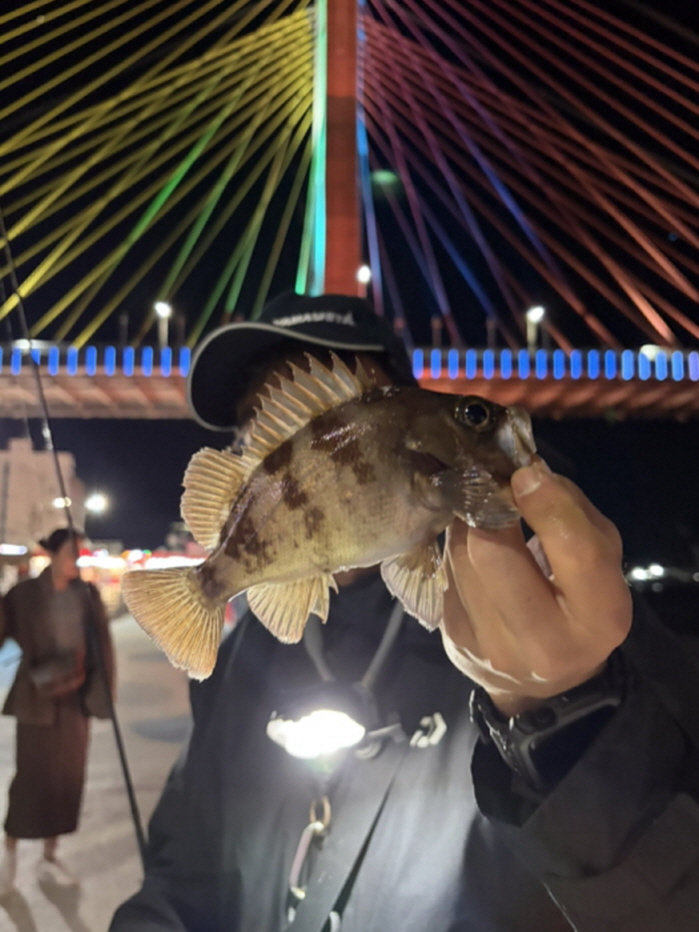 필자가 씨알 굵은 볼락을 낚았다.