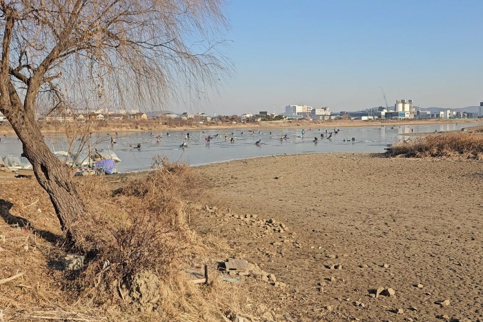 인천 검단수로에 많은 낚시인들이 얼음낚시 출조를 나와 있다.