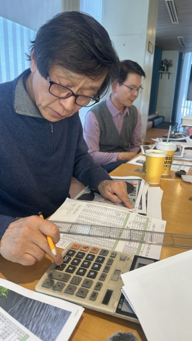 명정구 박사가 계산기를 이용해 상대 길이를 계산하고 있다.