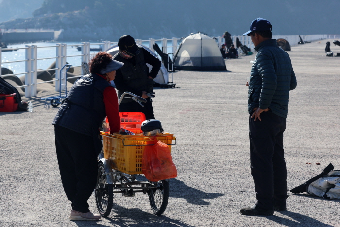 크리스마스 전후로 40cm급 감성돔이 마릿수 조과를 보였고 1~2월에는 5짜 감성돔도 더러 낚였다. 하지만 물건항을 다기능어항으로 개발하며 오랜 기간 공사가 지속된 결과 조과가 형편없이 추락했다. 2025년 가을까지도 감성돔을 노리고 출조하는 낚시인들이 적었는데, 올해는 어찌된 영문인지 1월 둘째 주가 지나자 감성돔이 호황을 보인다는 소식을 들을 수 있었다.