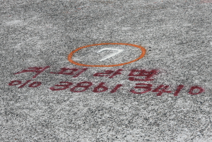 물건방파제 바닥에 있는 전화번호. 오랜 기간 커피와 라면을 판매해온 아주머니 전화번호며 크게 적힌 숫자로 방파제 위치를 알려줄 수 있다.