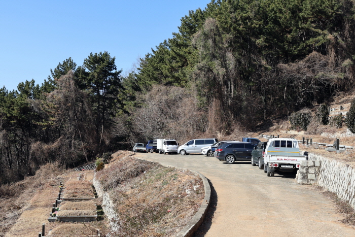공동묘지 주차장. 15대 정도 주차가 가능하다.