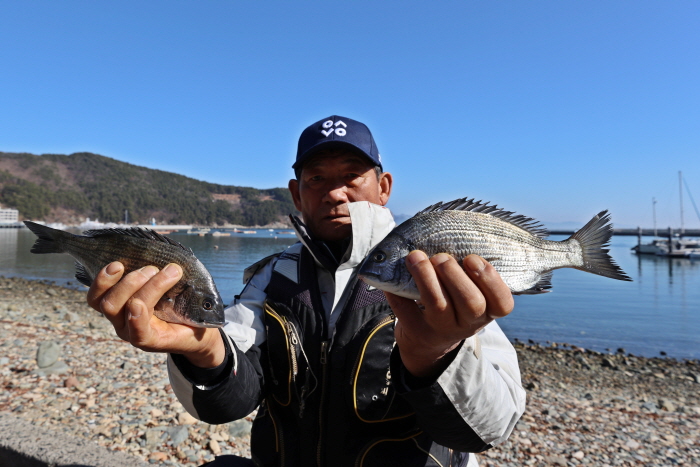 기자는 작년 11월 이후 남해도 특집 기사를 준비하며 물건방파제 조황을 눈여겨보았다. ‘언제가 한 번은 감성돔이 붙겠지’라는 기대감이 있었기 때문이다. 하지만 가을에는 20cm 내외의 잔챙이만 붙었고 겨울로 접어들자 궂은 날이 이어지며 감성돔이 낚이지 않았다. 그러다 지난 1월 15일 부산 낚시인 홍성집 씨에게 “물건방파제에 감성돔이 붙었다. 현지 낚시인에게 연락이 왔는데 30cm급은 흔하고 40cm급도 더러 낚인다”는 전화를 받았다. 망설일 것 없이 남해도로 차를 몰았고 창원에서 온 김영규 씨가 합류해 출조에 나섰다.