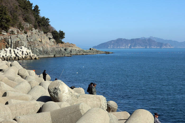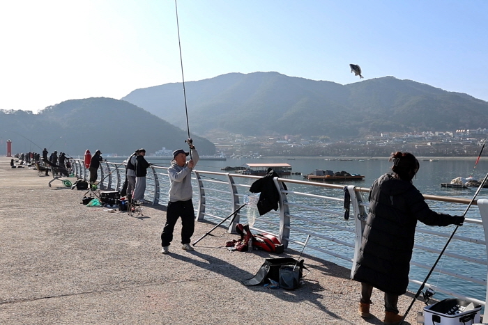 방파제 외항에 자리잡은 낚시인들. 주로 전어와 학꽁치를 노린다.