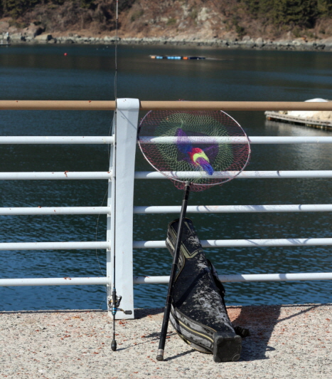빨간등대방파제 초입에서 30m 정도 진입해 내항을 바라보고 캐스팅을 시작했다. 홍성집 씨는 “내항이지만 바닥에 석축과 암반이 많고 수심이 13~14m로 깊기 때문에 영등철에도 감성돔이 잘 낚이는 자리”라고 말했다. 단, 발판이 7m 내외로 아주 높은데다 펜스까지 쳐져 있어서 뜰채는 7m 이상 긴 것을 준비해야 한다. 홍성집 씨는 12m짜리 뜰채를 준비했는데 민물낚시용 수초제거기를 개조한 것이라고 했다.