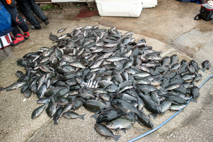 30cm 이하급 씨알들은 모두 방류한 후 모아본 회원들의 조과.