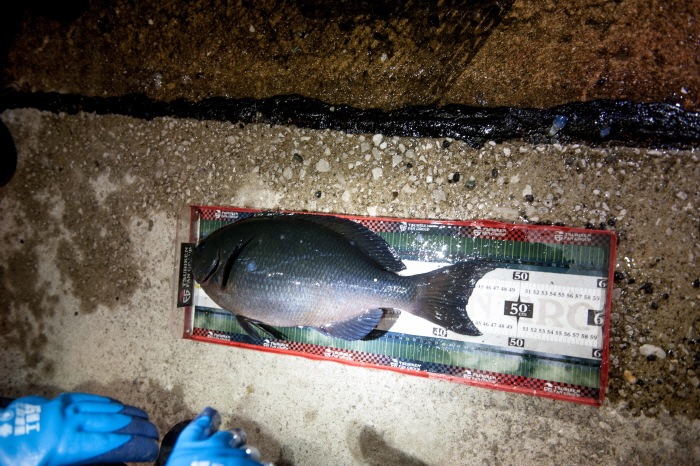1일차 1라운드 계측이 이루어졌다. 총 3마리의 벵에돔 길이 합산으로 순위를 정했다. 포인트 마다 많은 마릿수의 대물 벵에돔이 쏟아졌고 금보성 선수는 45cm급 긴꼬리벵에돔을, 박기만 선수도 비슷한 씨알의 벵에돔을 올려 눈길을 끌었다.