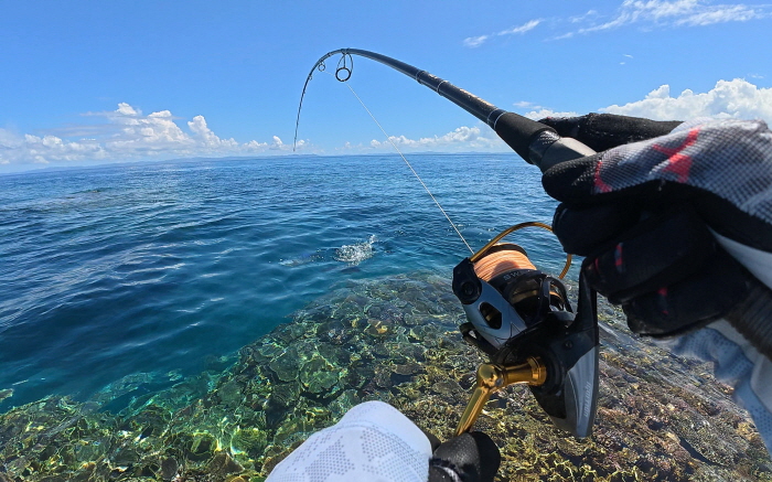 또한 리프 끝에서의 낚시는 장비보다 체력과 안전장비가 더 중요합니다. 35도 이상의 폭염, 허리까지 차오르는 바닷물, 미끄러운 리프 위에서 균형을 유지하며 낚시해야 합니다.