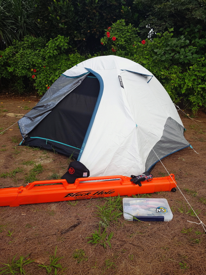 바닷가 바로 옆에 캠프를 차리고 PE 0.6부터 PE 5까지 총 4가지 세팅의 태클을 준비해 다양한 상황에 대응했다.