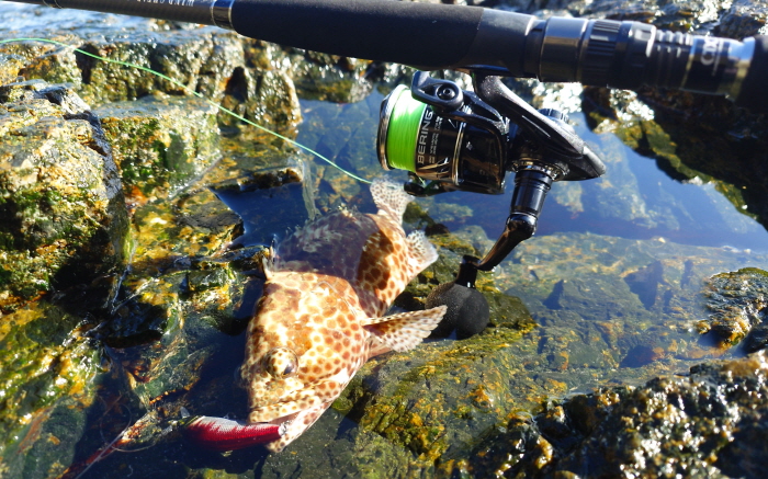 N.S의 윈드 셰어 인쇼어 S-862 ML 로드를 들고 얕은 수심의 갯바위 연안을 탐사하며 중소형 물고기를 노렸다.