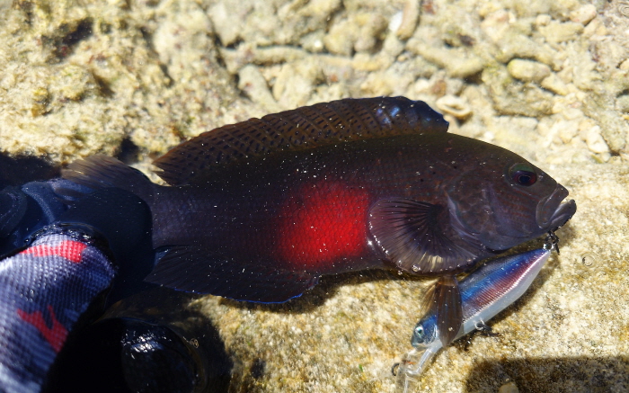 이번 여행에서 약 200마리를 낚아낸 소형 그루퍼. 열대 해역 어디서든 쉽게 만날 수 있는 매우 공격적인 어종이다.