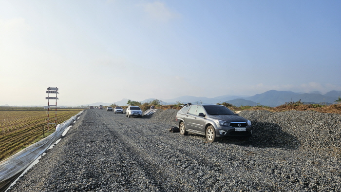 파쇄석이 깔려 진입 여건이 좋아진 연안 도로.