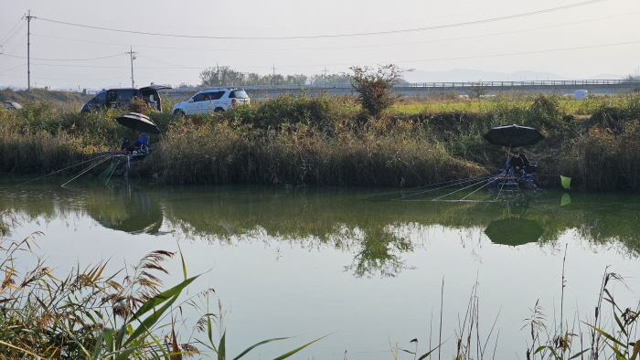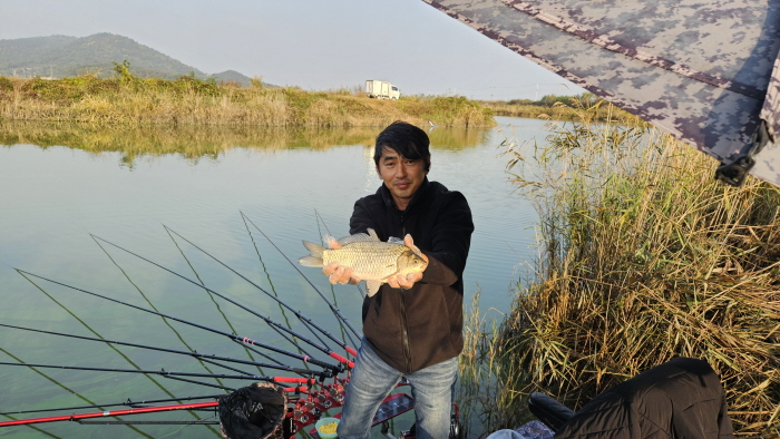 학산천은 연중 붕어낚시가 가능하고 특히 봄, 가을에 씨알 큰 붕어가 낚인다. 다만 수심이 얕기 때문에 겨울 한파가 오면 수면이 어는 게 단점. 하지만 출조일이었던 11월 8일은 여전히 물 낚시가 잘 될 때라 큰 문제는 없었다.
